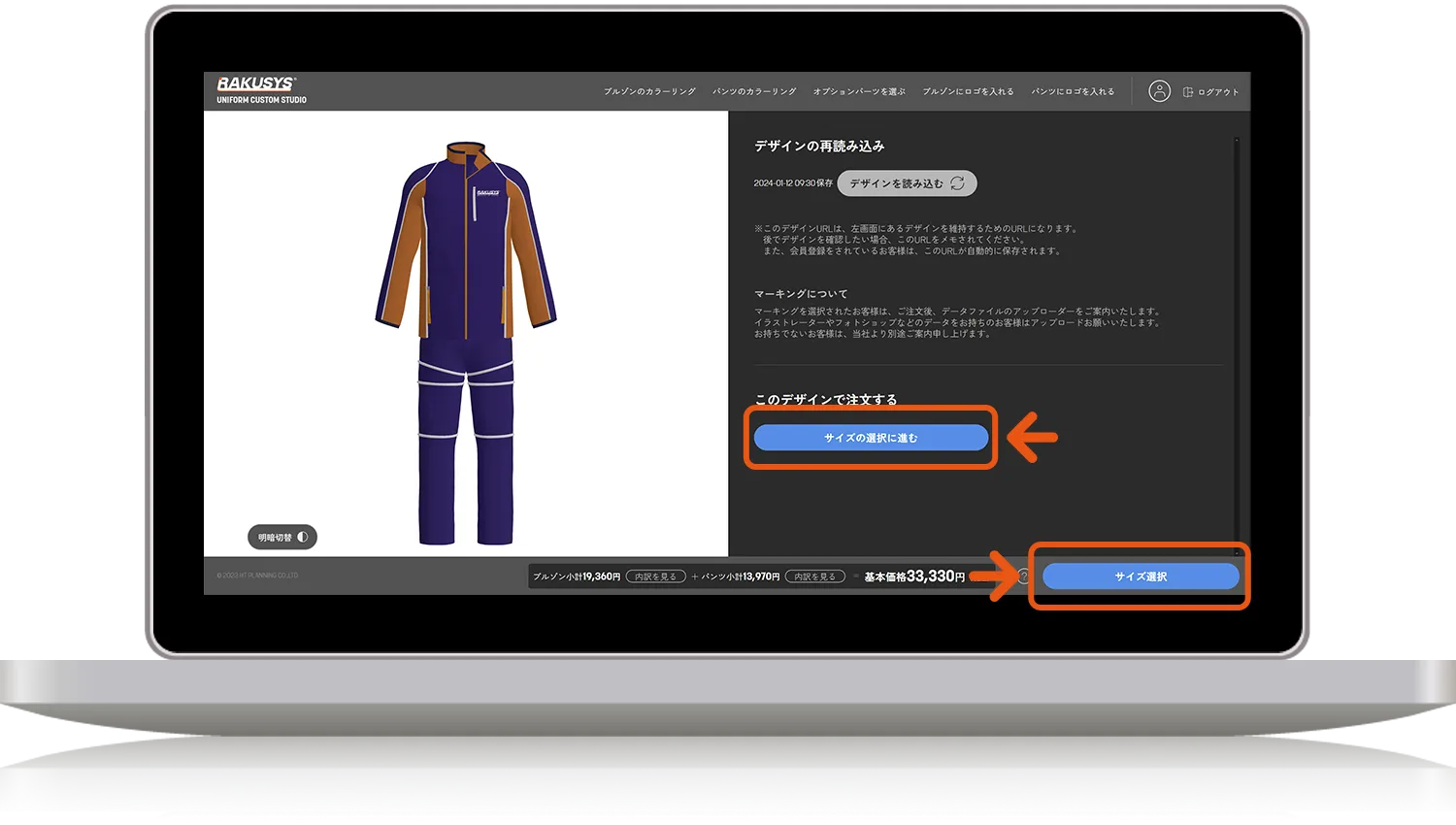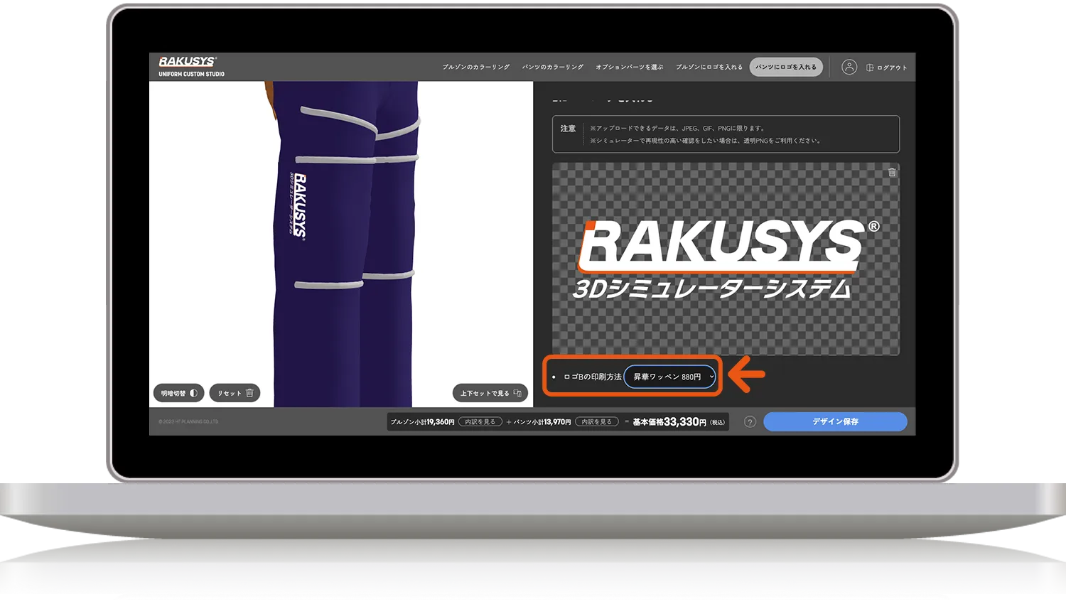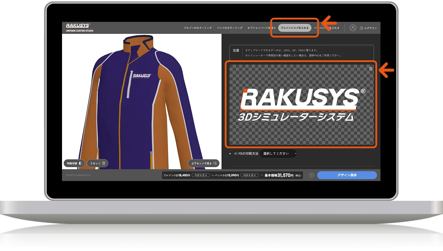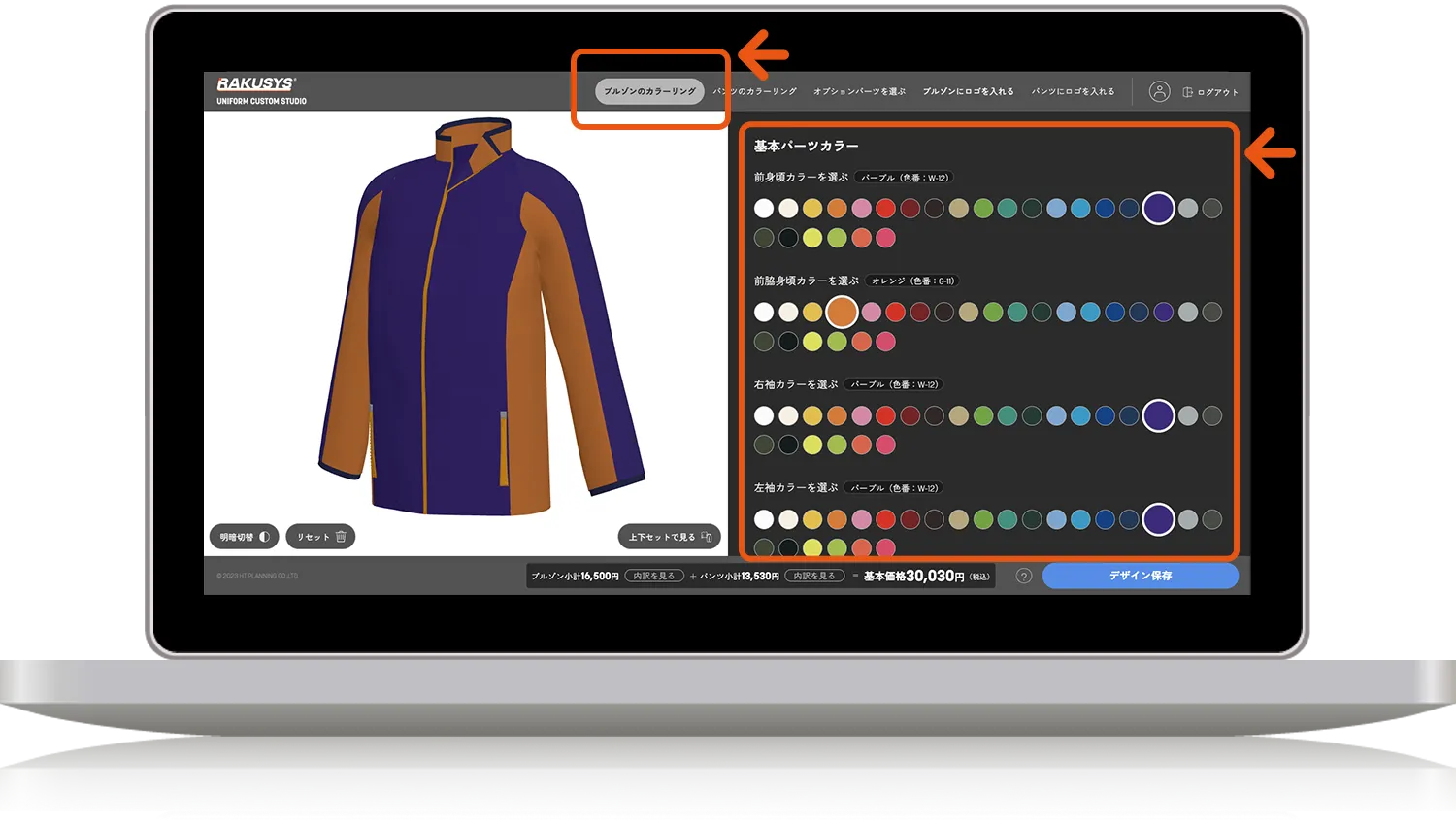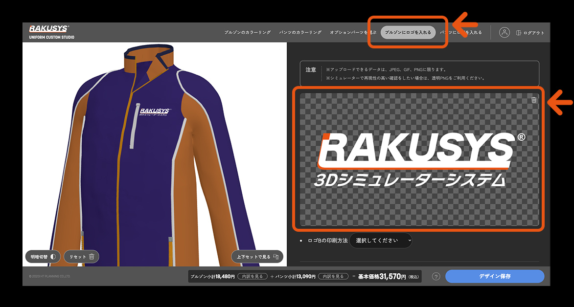 全てのカラーリングとマーキングのアップロードが完了したら、一番下の【デザイン保存】をクリック