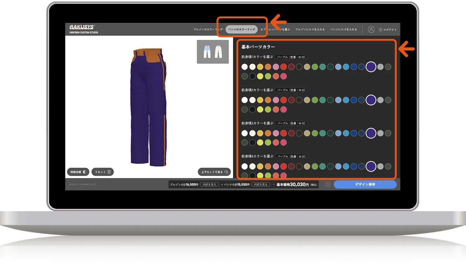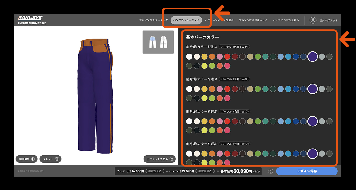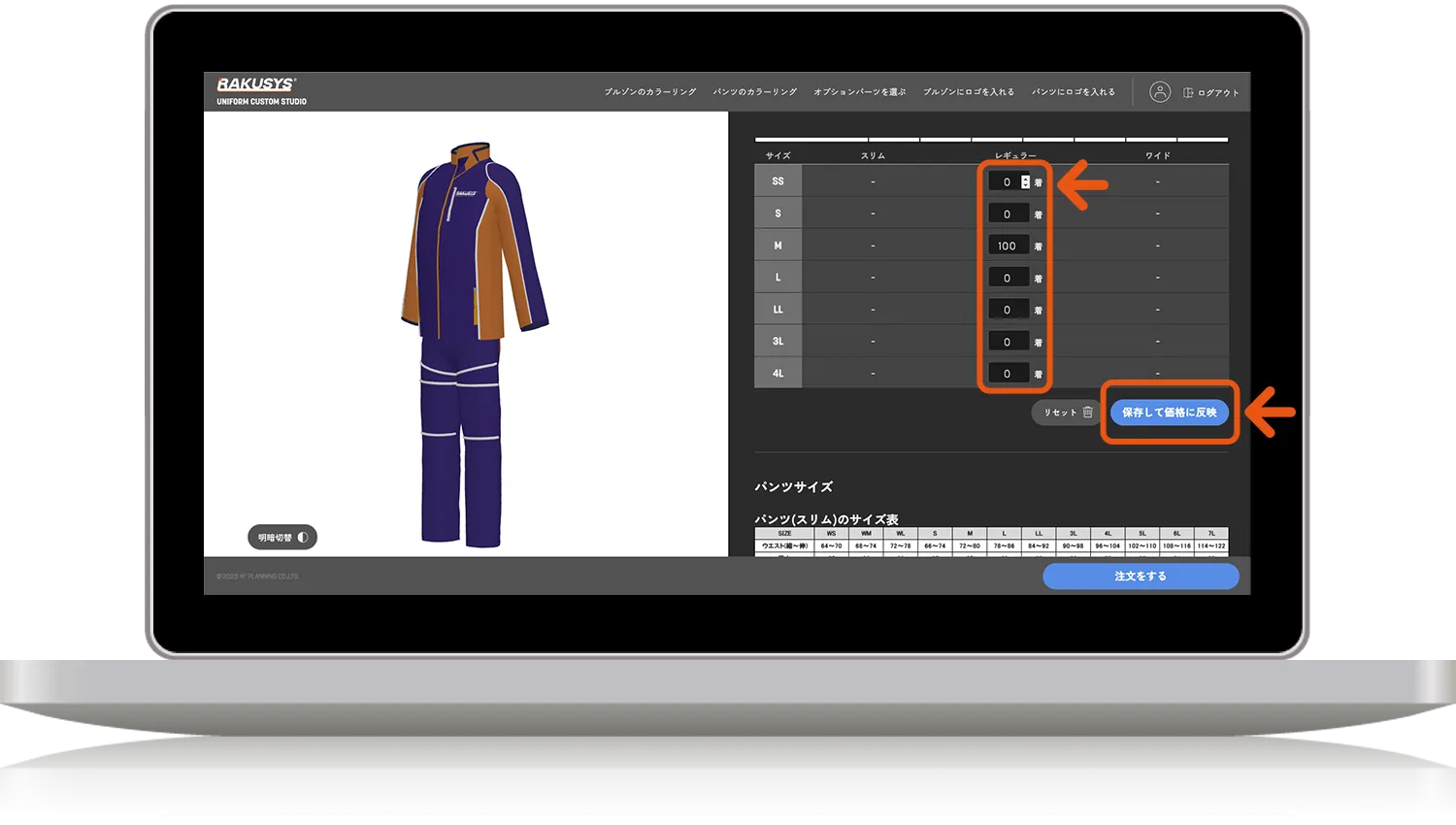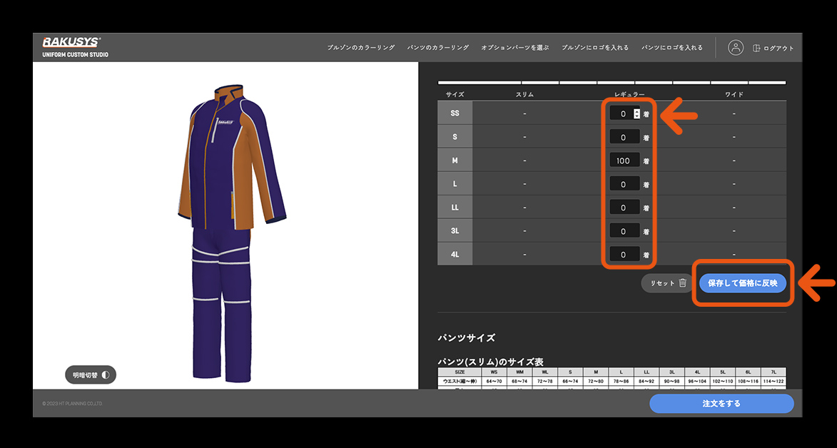 パンツの必要枚数を入力→「保存して価格に反映」をクリック