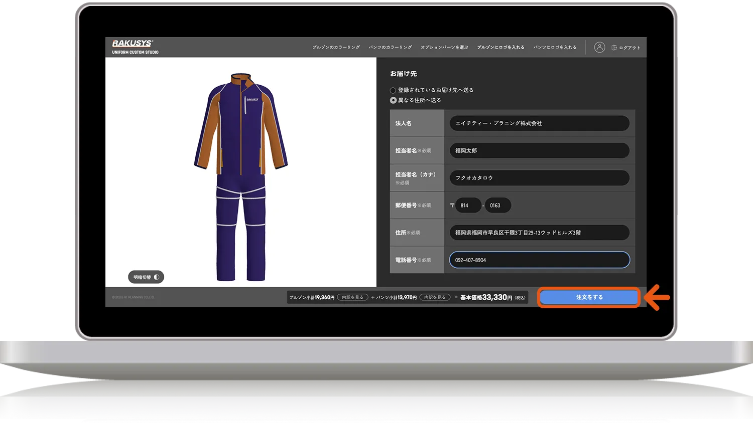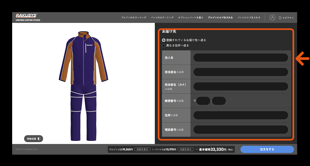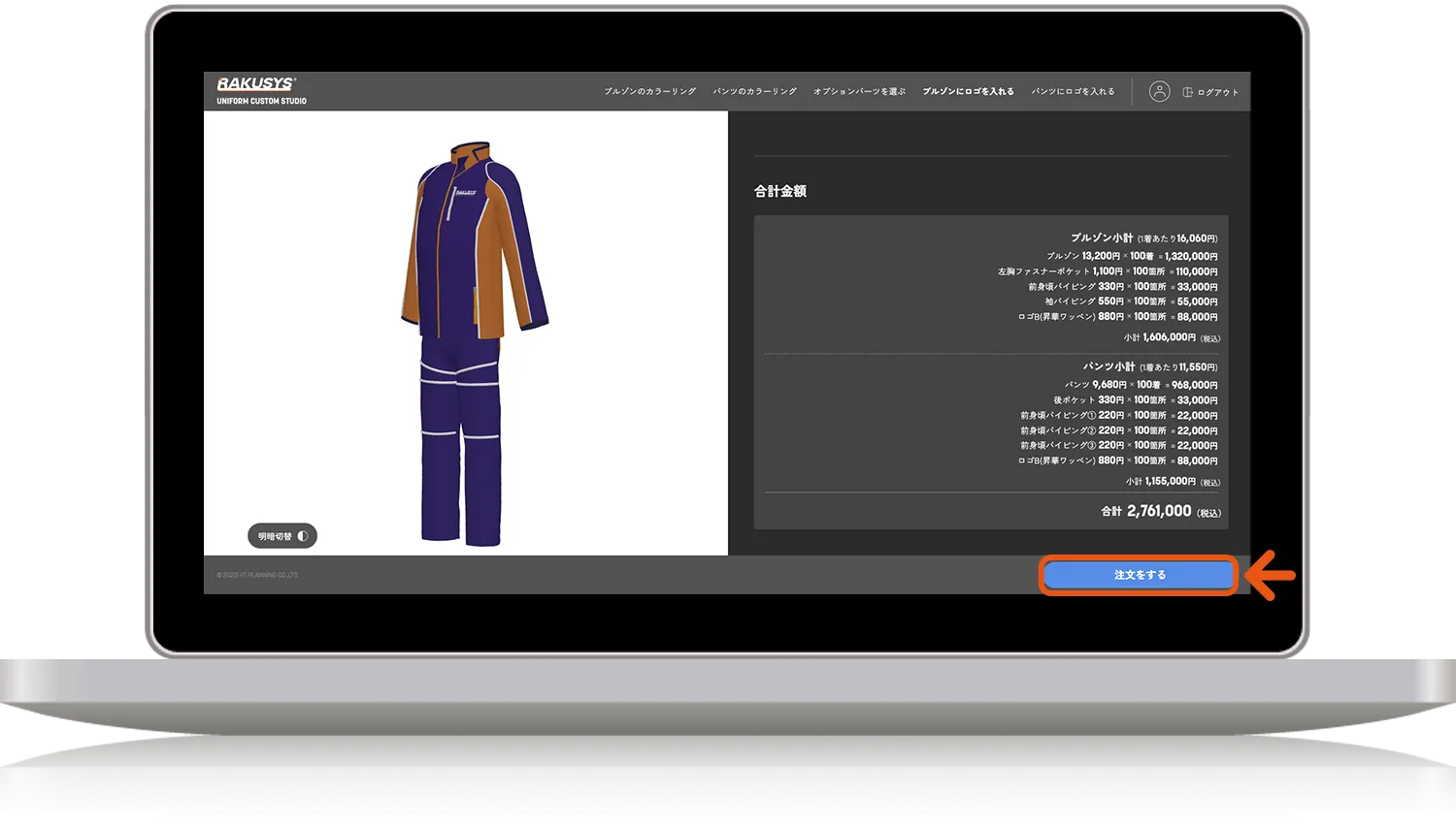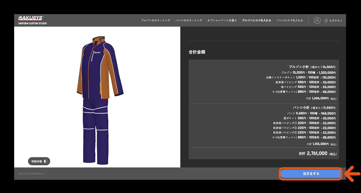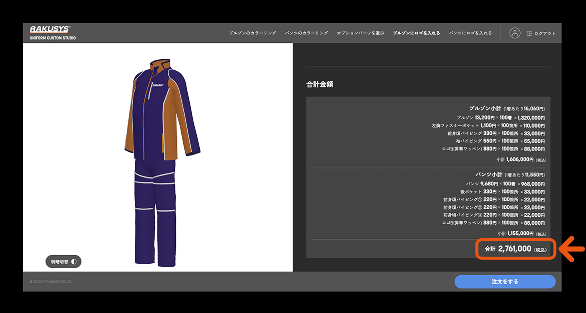 ・ブルゾン、パンツをセットでご購入いただく際は、3D画面右下の「上下セットで見るボタンをクリックしていただくと、上下セットでご確認いただけます。