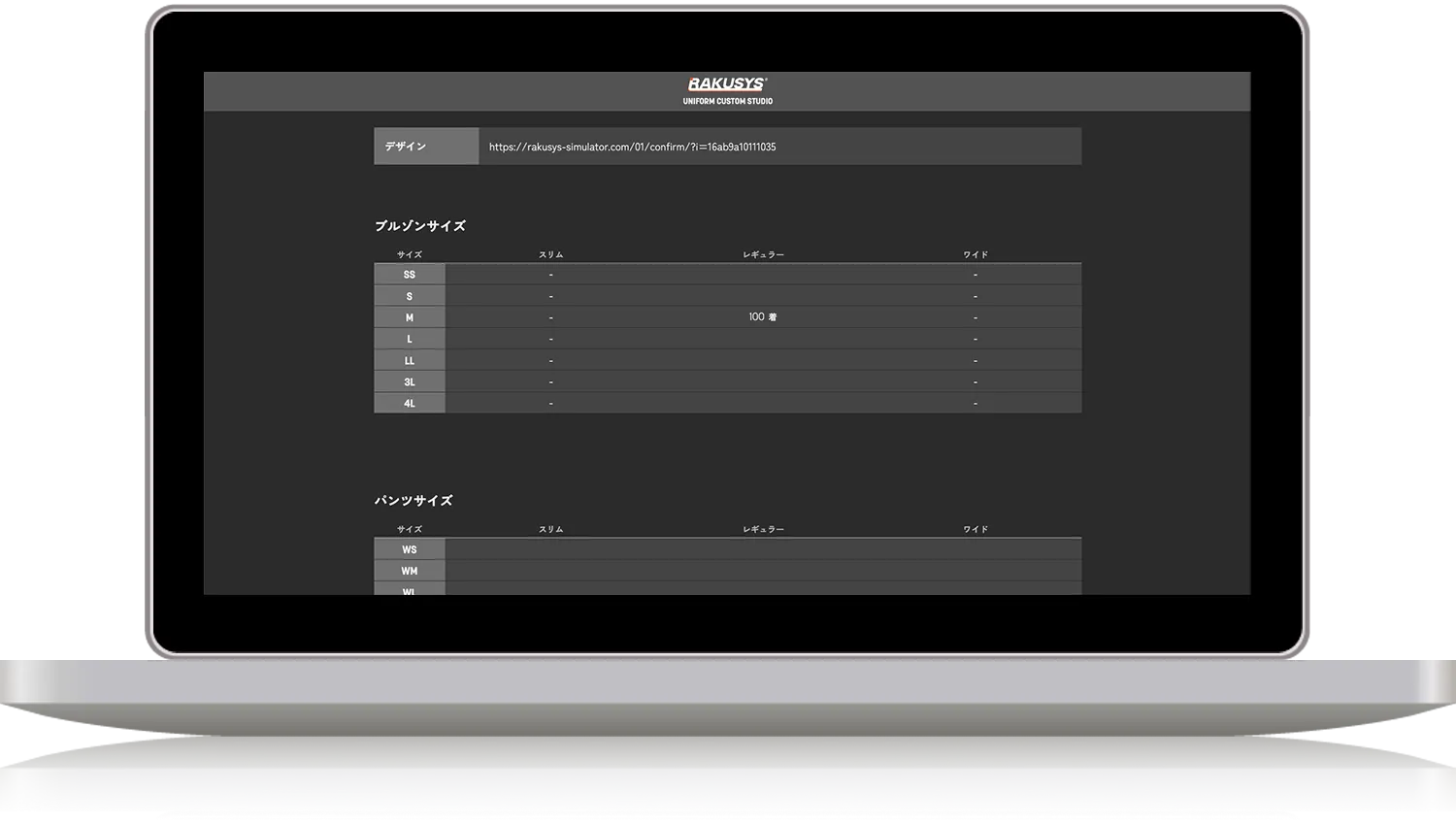 ※表示されるカスタムデザインURLを保存しておけば、次回現在のカラーリングを呼び出すことが可能です。 -