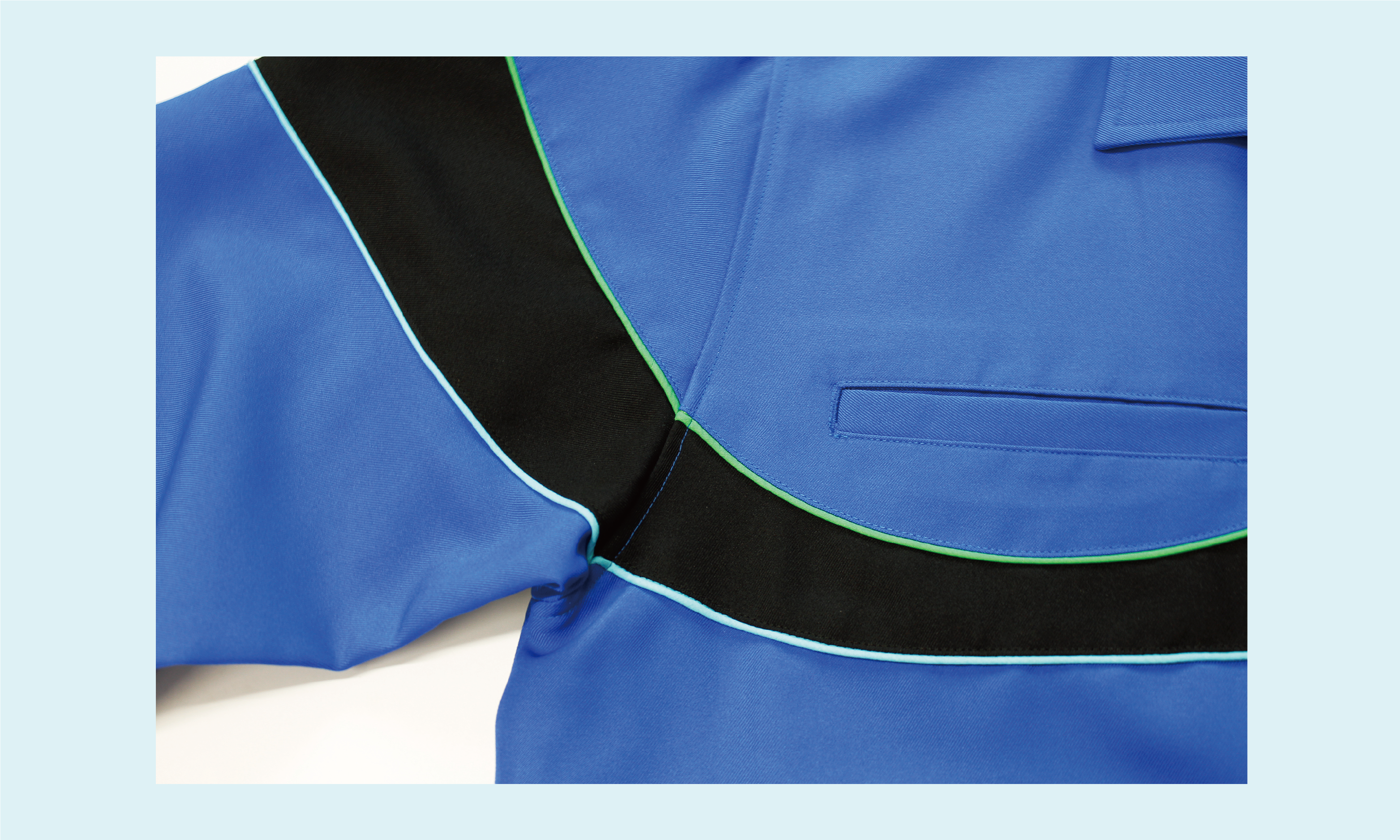 前身頃パイピング・左胸ファスナーポケット・袖パイピング・後身頃パイピング
