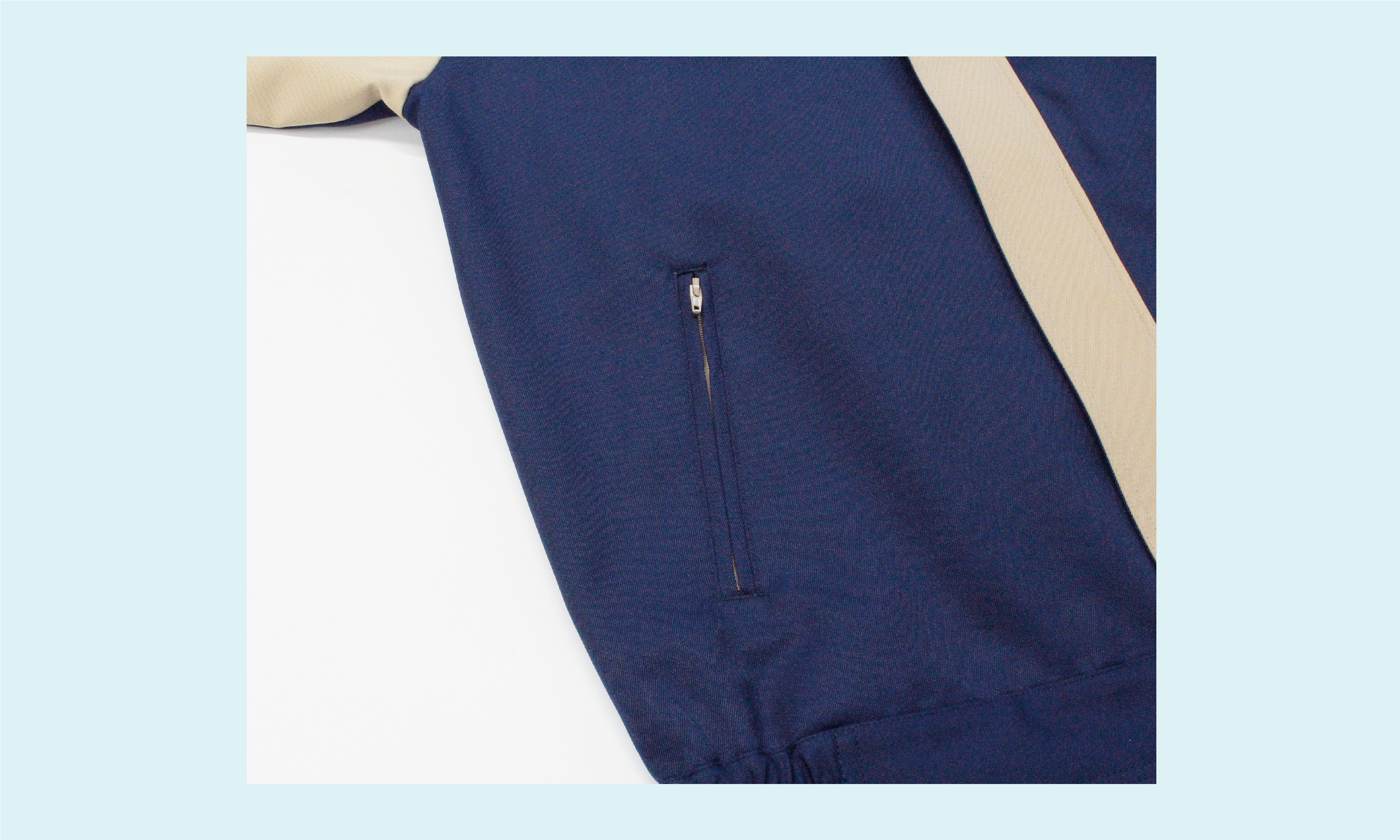 スポーティー(ジャンパー)品番:DPT00001 【仕様について】 『スポーティージャンパー』 〔仕様〕 腰ファスナーポケット・腰ベルトなし・セットインスリーブ 各仕様 腰ファスナーポケット 腰ファスナーポケットがある仕様で収納が充実しております。 腰ベルトなし 腰ベルトをなくす事でワーク感がなくなりスポーティーなイメージをグッとUPさせます。 セットインスリーブ セットインスリーブとは体に沿うように袖が付きます。 袖の形状に丸みが出て、腕を包み込むゆとり分が確保できる為、着脱しやすいしやすい仕様となっております。