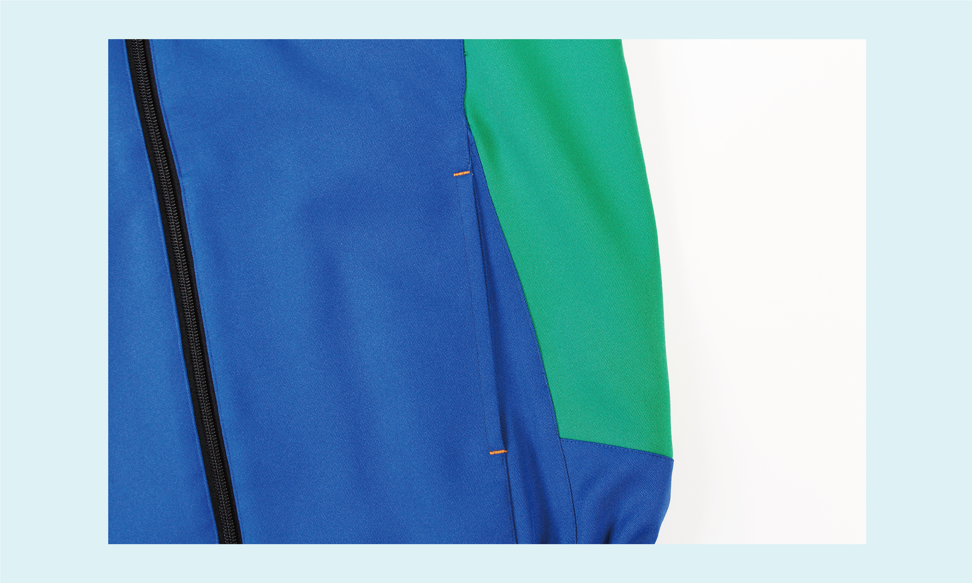 セットインスリーブとは、体に沿うように袖が付きます。袖の形状に丸みが出て腕を包み込むゆとり分が確保できる為、着脱しやすい仕様となっております。